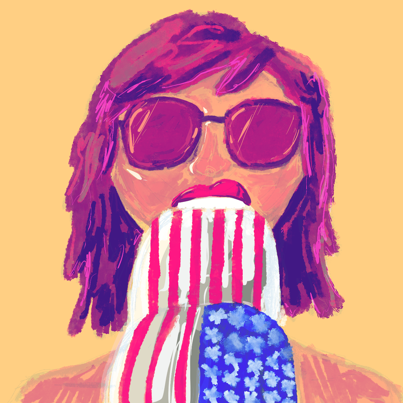 In 2019 piece was selected by the Sacramento Fine Arts Center for their exhibition "Animal House." The original sketch (the picture bellow) was done with sharpie, I repainted it with acrylic on a canvas for the exhibition.